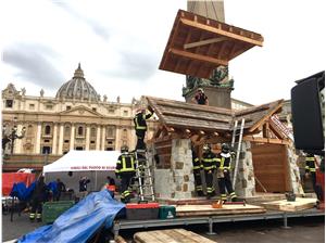 Sono 35 i Vigili del Fuoco Volontari di Scurelle, di cui 20 sono scesi a Roma per poter allestire tutte le strutture: “Quando il Sindaco ci ha chiesto se saremmo stati disposti a montare il Presepe a Roma – ha detto Roberto Sartor, Comandante dei Vigili del Fuoco Volontari – abbiamo accolto subito con entusiasmo l’idea. Abbiamo dovuto ricostruire le casette ex novo, perché quelle che c’erano non potevano essere trasportate e abbiamo lavorato un anno per far sì che potesse andare tutto bene. Quando siamo arrivati a Roma eravamo così entusiasti che abbiamo montato tutte le strutture in una giornata, mentre avevamo previsto di impiegarne due”.